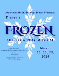 The cast and crew of “FROZEN The Broadway Musical” are excited about presenting the show on March 26, 27 and 28, 2026. All performances will take place in the Line Mountain High School Auditorium at 7:00 p.m. The cost of tickets is $10.00 for adults and $8.00 for NON- LINE MOUNTAIN STUDENTS. Tickets are free for Current Line Mountain students, all preschool children and senior citizens who have LINE MOUNTAIN SENIOR CITIZEN PASSES for athletic and school activities. Please note that even if you qualify for a free ticket, YOU MUST ORDER A TICKET because ALL SEATS ARE RESERVED. Tickets will go on sale on Saturday, February 28th. Order your tickets by calling 717-692-3526. If there is no answer, please leave your name, phone number, which night you would like to attend and how many adult/student/qualifying free tickets you want to order. You will receive a call back for conformation after the messages are retrieved. There will be a “Will Call” line at the door where you can pay for and pick up your preordered tickets. There will also be a separate line to purchase the remaining unreserved tickets at the door. ❄️☃️